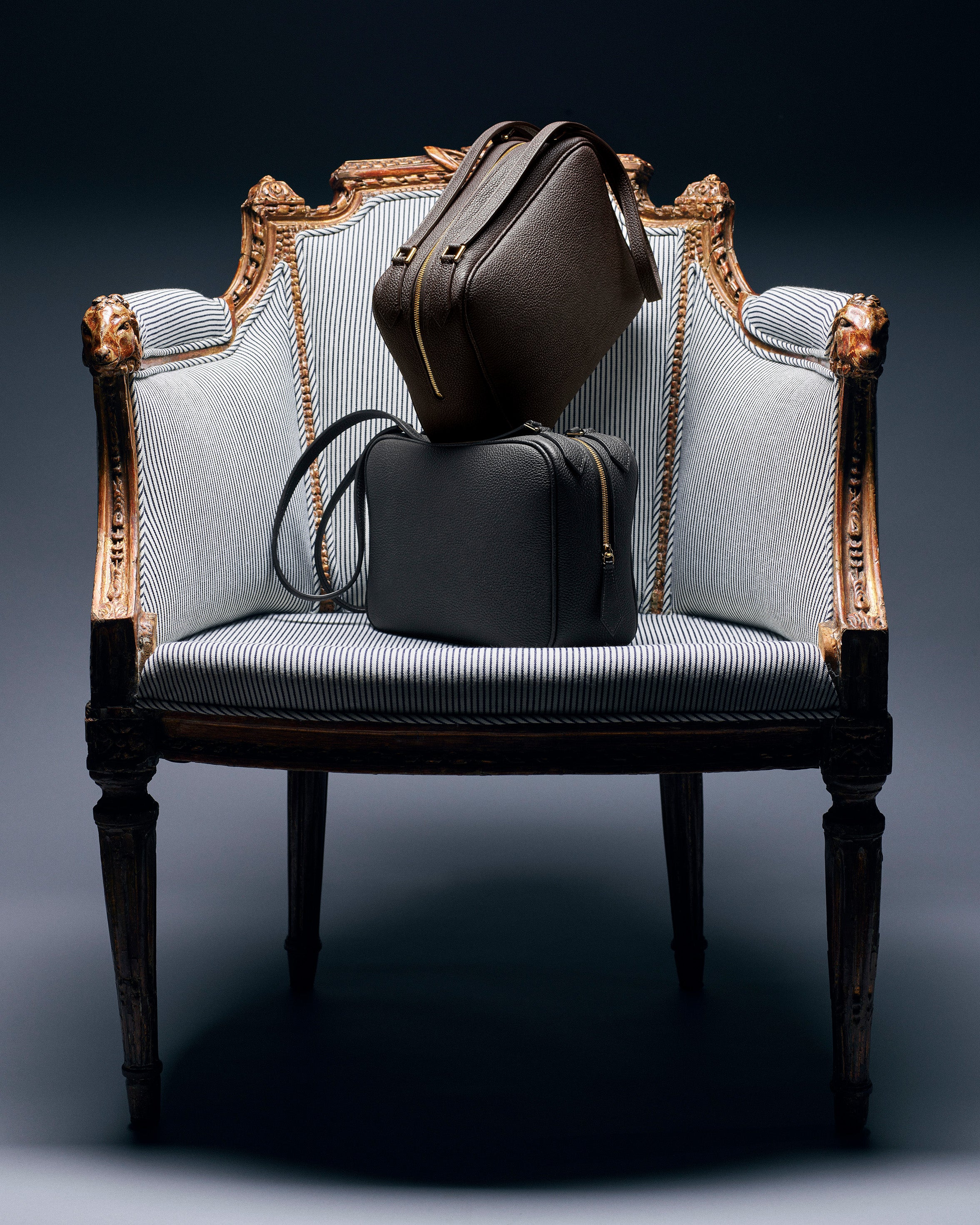 An edited assembly of bags, impeccably handcrafted in France by master artisans utilizing the finest French leathers. From the softly curved Edith 23—finished with gold-plated custom closure—to the streamlined Vacances 40 rendered in rich pebbled leather, the curation artfully embodies the modern sensibility and enduring allure that defines Adam Lippes.