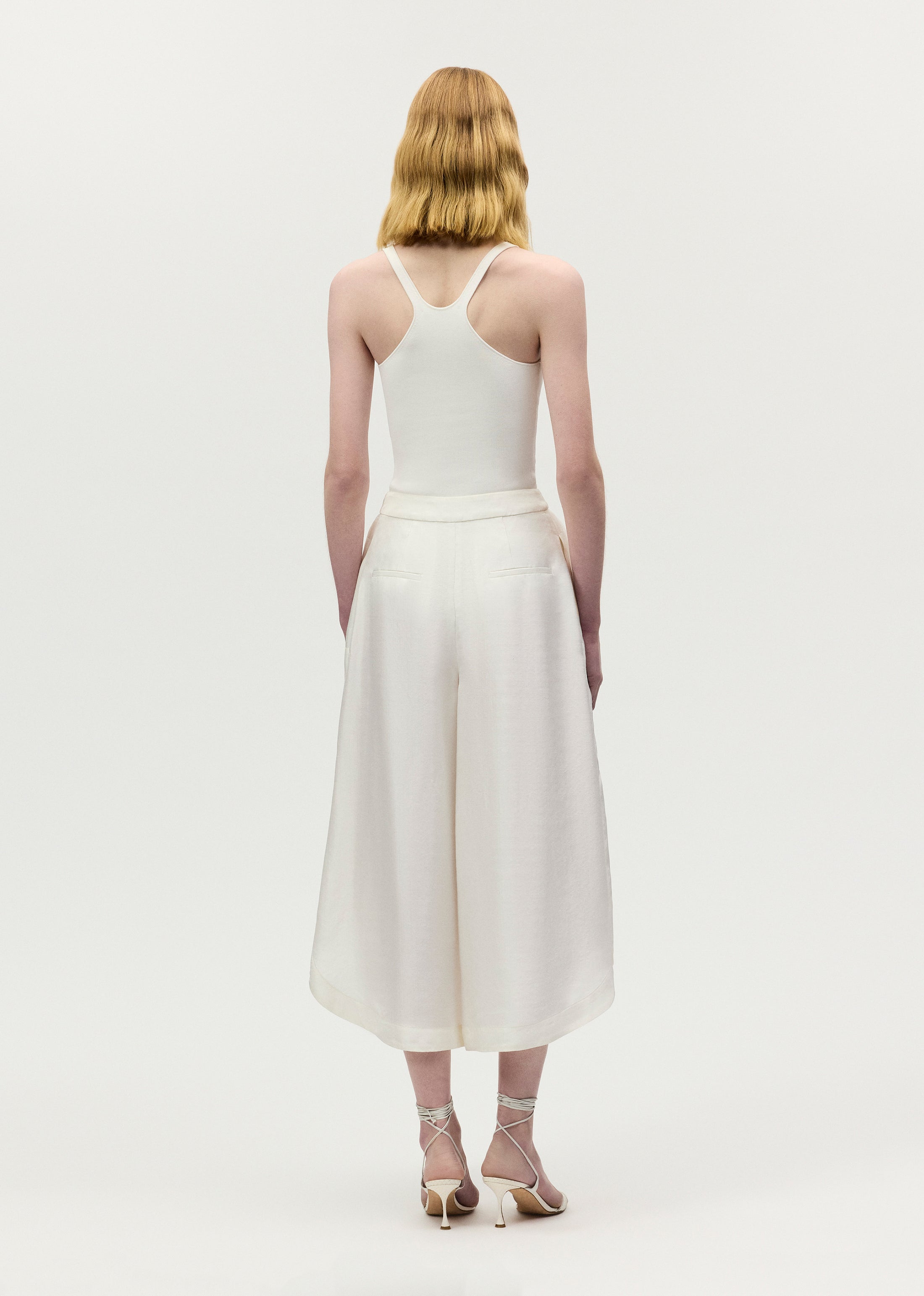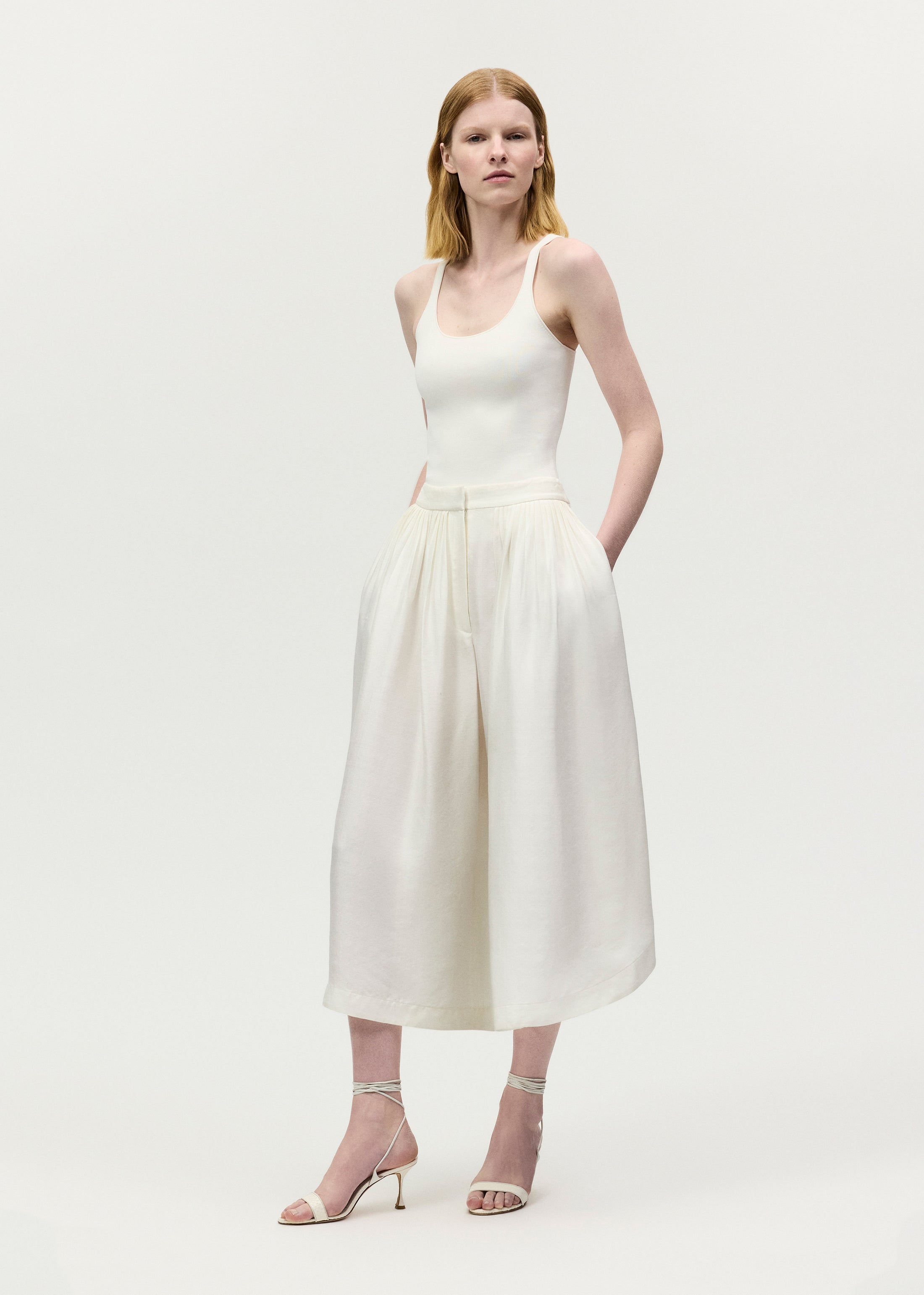 Rendered in lightweight natural silk, the Athena Pant is designed with micro hand pleating in a voluminous yet versatile, cropped silhouette. A covered button fastens this style along the side.