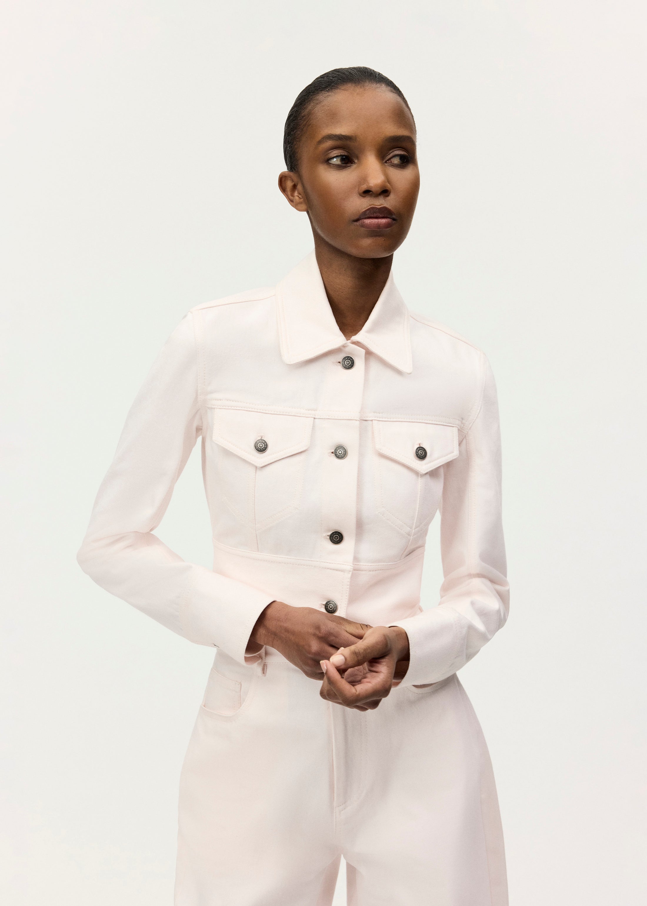 An elevated denim classic, the Dante Jacket features a clean-lined, cropped cut designed to contour the body and show off the waist. Custom shank buttons finish the front. Pair it with the straight-fit Lucy Jean or the Eloise Dress.