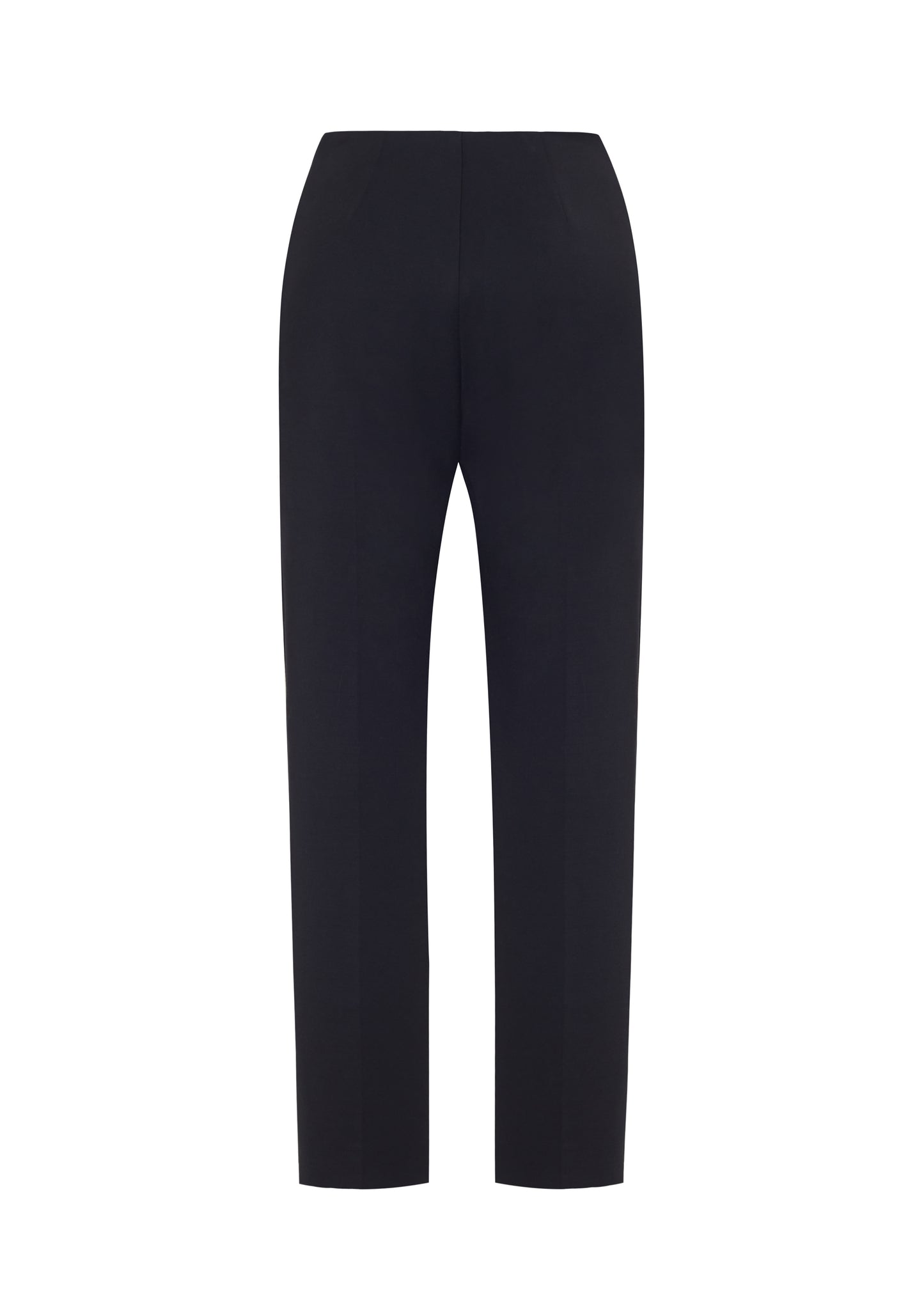 The Kit Pant introduces a sleek new silhouette, impeccably tailored in compact viscose. Designed to contour the legs, this ankle-grazing pant delivers effortless polish and modern ease.