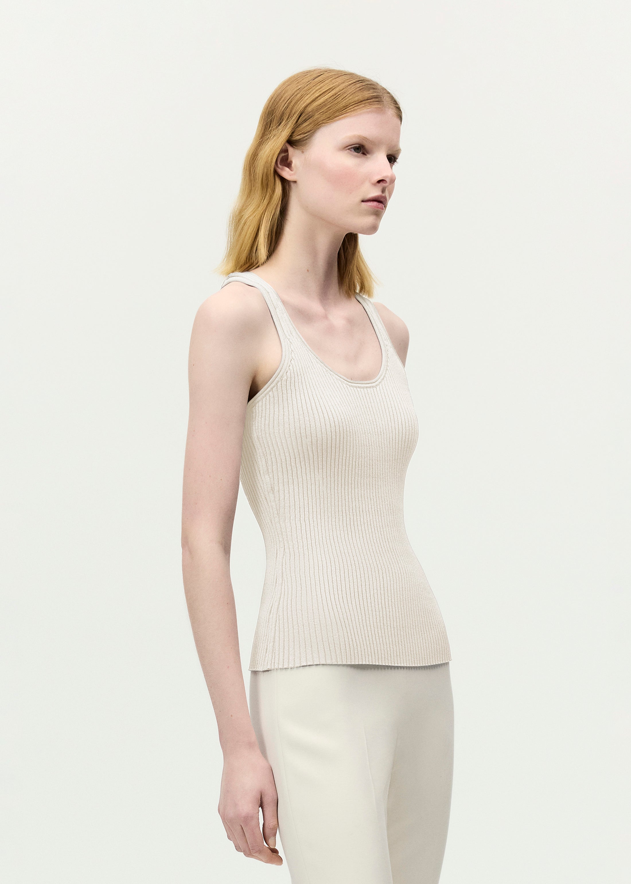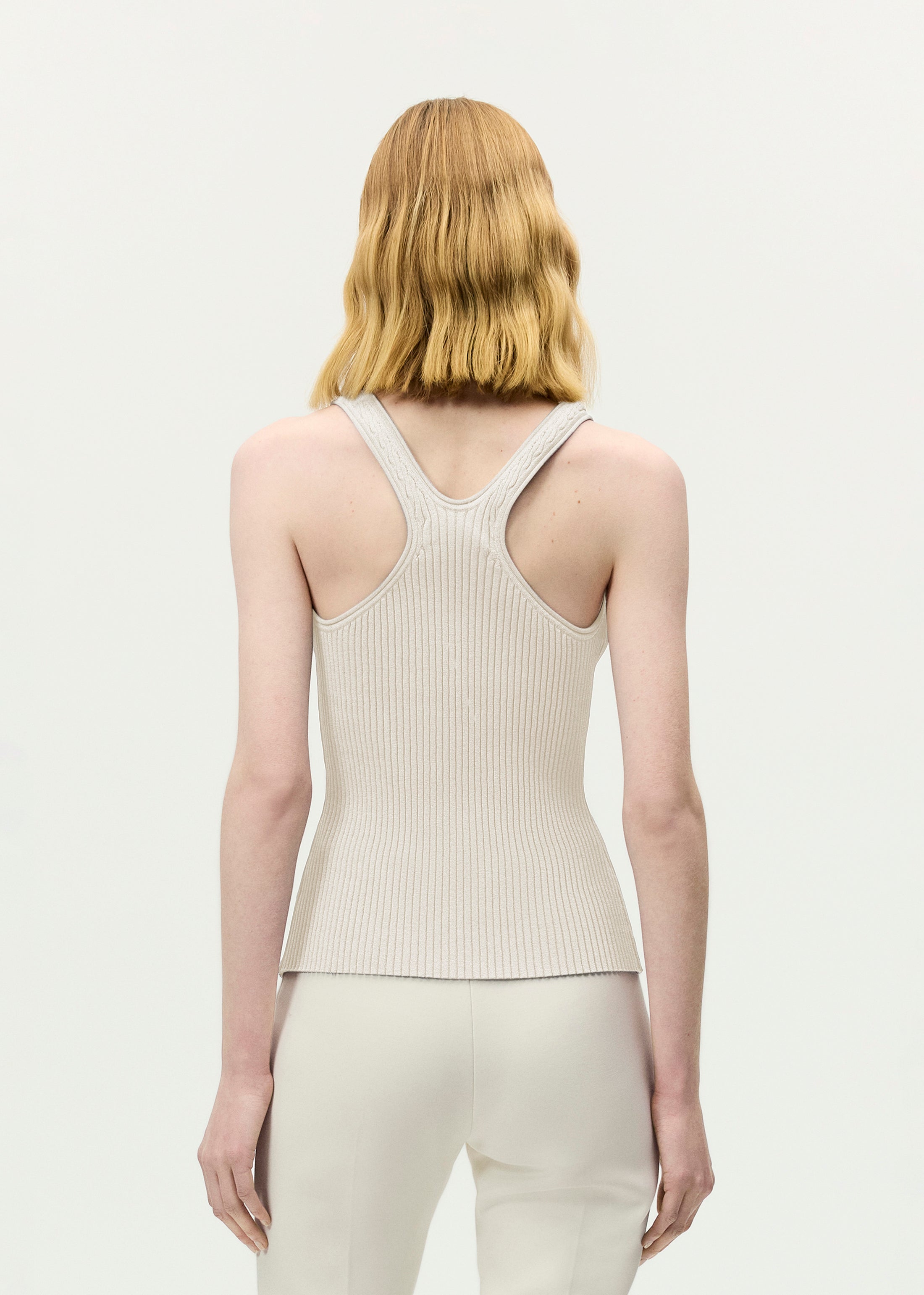 The Peretti Tank is a fine knit in sleek viscose. Designed as a second skin, it features ribbed detailing, slim, curved straps, and a scoop neckline that elegantly skim the body.