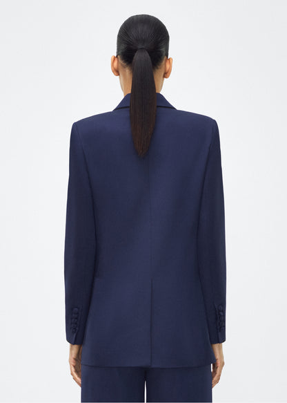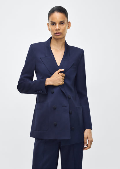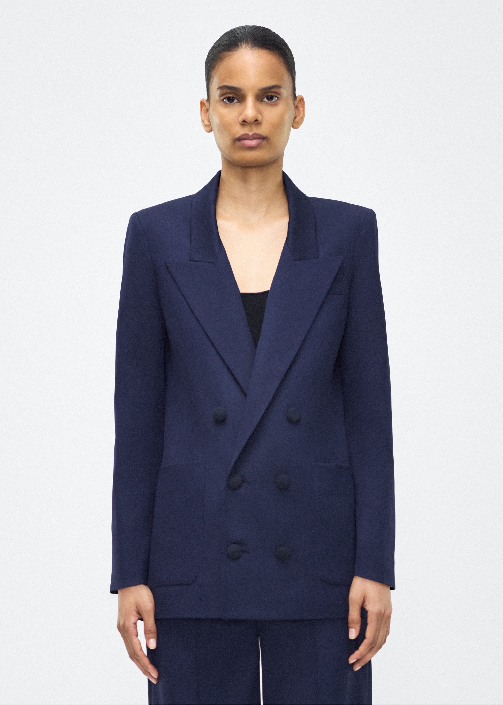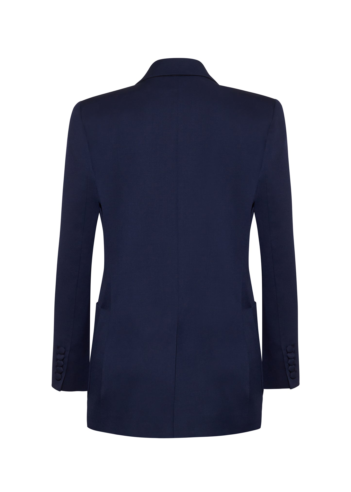 The Riva Jacket debuts in lightweight tropical wool—a structured, resilient fabric that maintains its shape while offering ease of movement. Featuring peaked lapels and a double-breasted front, it’s finished with covered buttons for a refined, polished look.