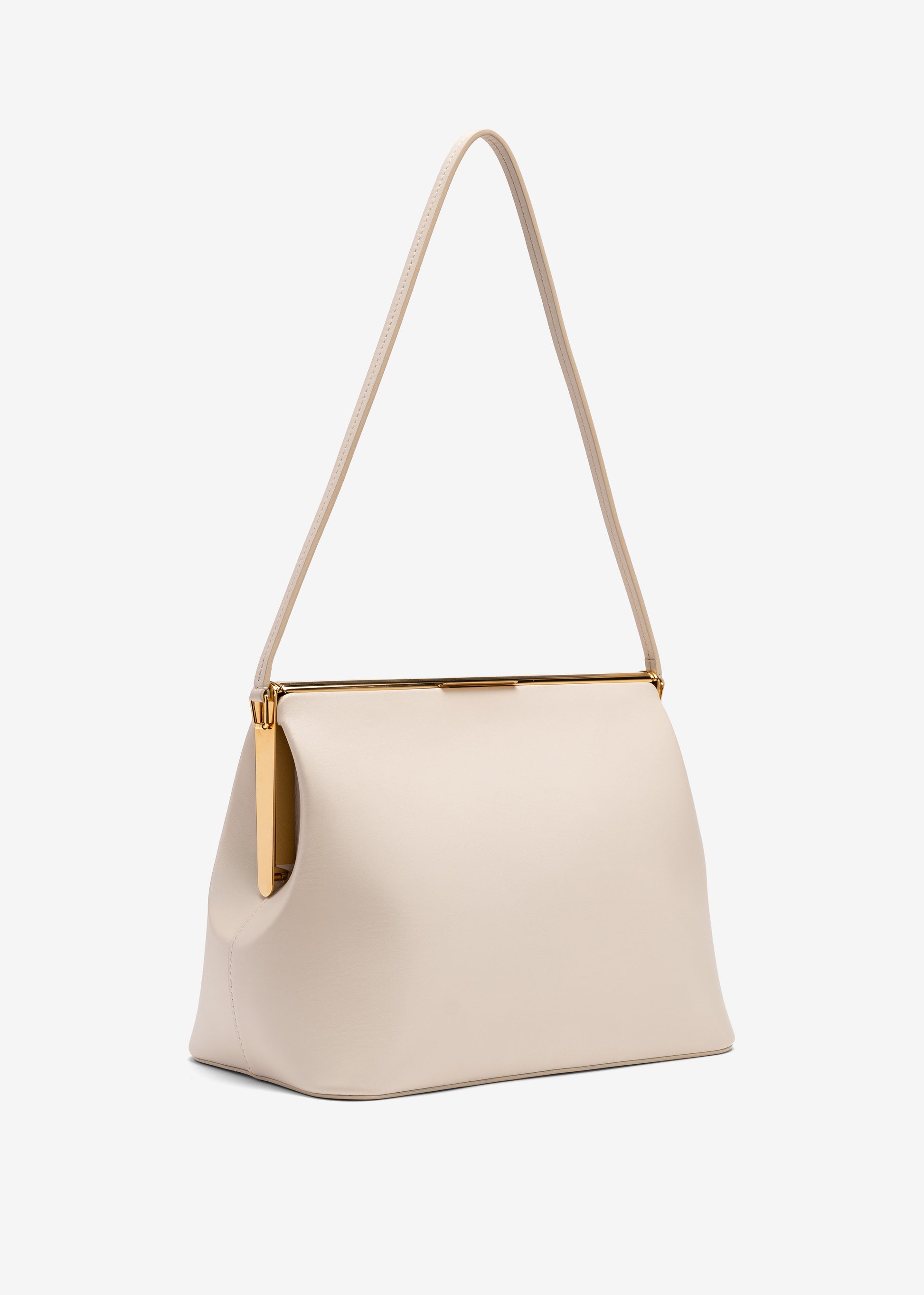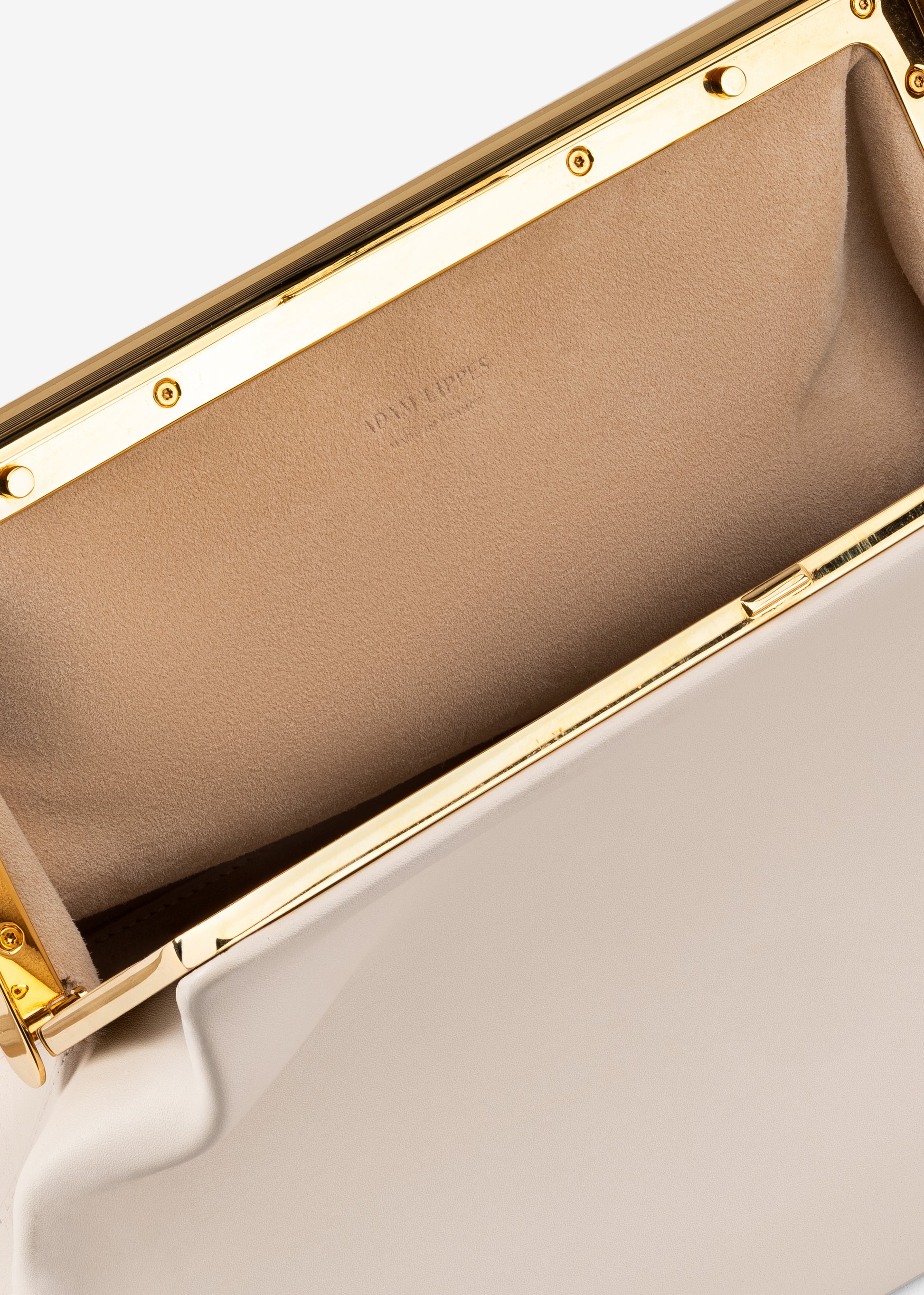 The Edith 23 is a sleek, softly curved silhouette expertly crafted by hand from smooth French calf leather. Finished with a custom closure plated in gold, it features a slim strap and luxurious suede-lined interior. Made in France.